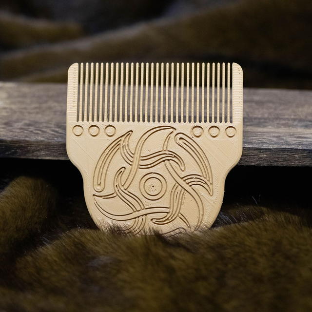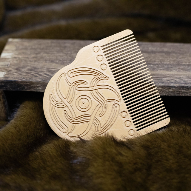 Ce peigne unique, inspiré de l’art viking 🛡️, allie praticité et esthétique. Réalisé en impression 3D 🖨️, il présente de fines dents idéales pour discipliner la barbe 🧔 ou les cheveux 💇.