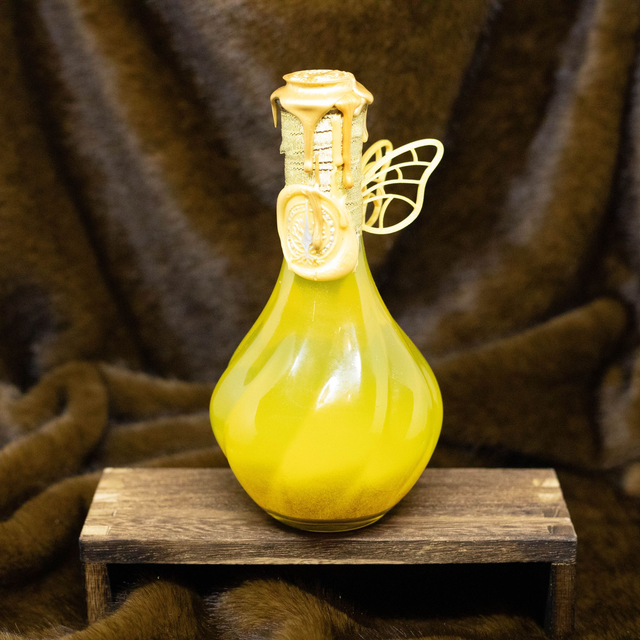 Son éclat jaune solaire, rehaussé de paillettes dorées, diffuse une aura de joie, d’énergie et de magie pure. Comme un fragment d’enchantement capturé dans une fiole, elle invite à rêver et à croire aux merveilles invisibles 🌟💫.